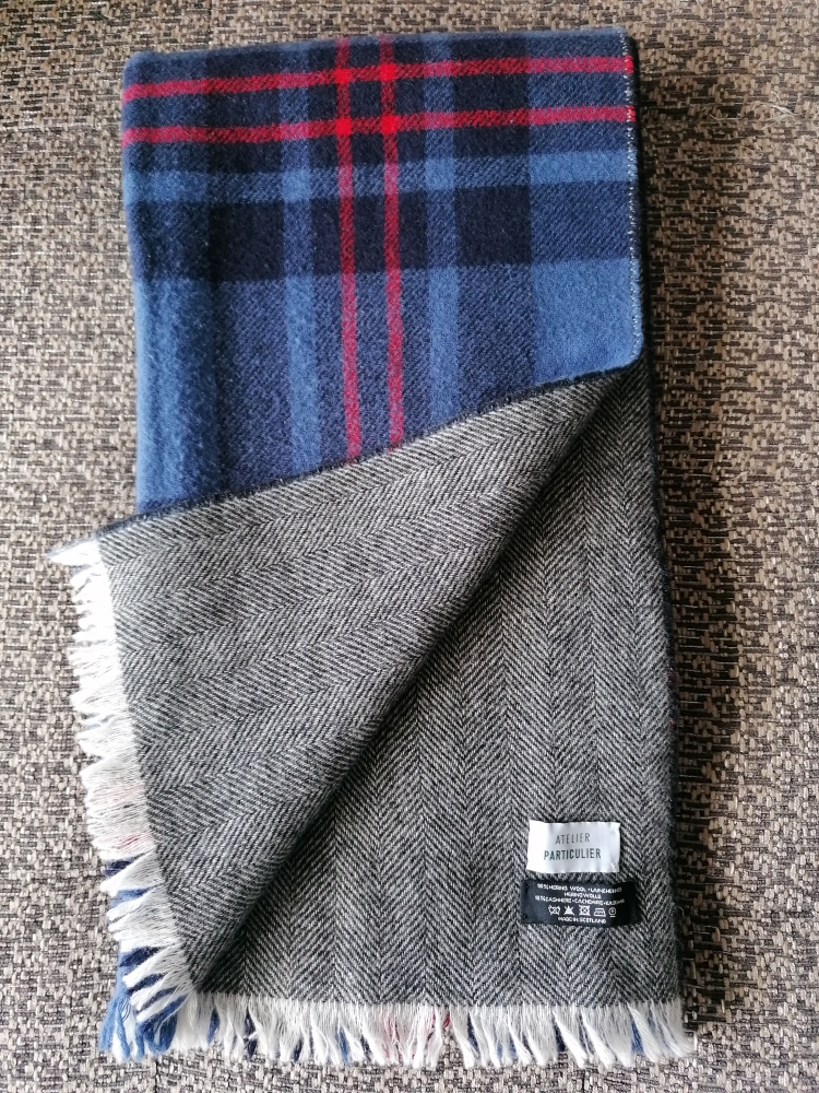 J’ai d’ailleurs trouvé sur le net le même motif tartan de Johnstons mais sans cette option double face. Le prix hors solde était exactement le même que sur Atelier Particulier, mais avec peu d’infos sur la laine utilisée. Le positionnement prix de AP me paraît donc bon.
