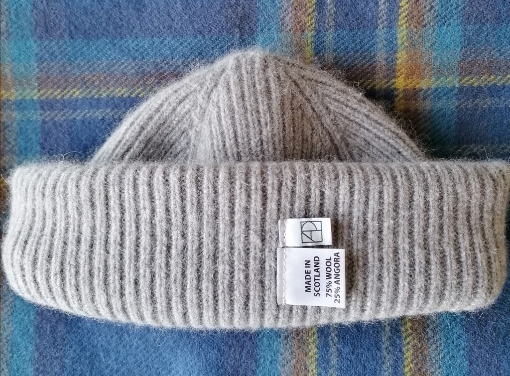 Il est tissé à Stewarton non loin de Glasgow dans un atelier spécialisé dans ce type de produits. Cela n’est pas spécifié par AP mais je pense fortement qu’il s’agit de Mackie of Scotland. Je possède un bonnet de cette marque et le modèle est similaire. Dans tous les cas, le bonnet est chaud, comfortable et très doux.