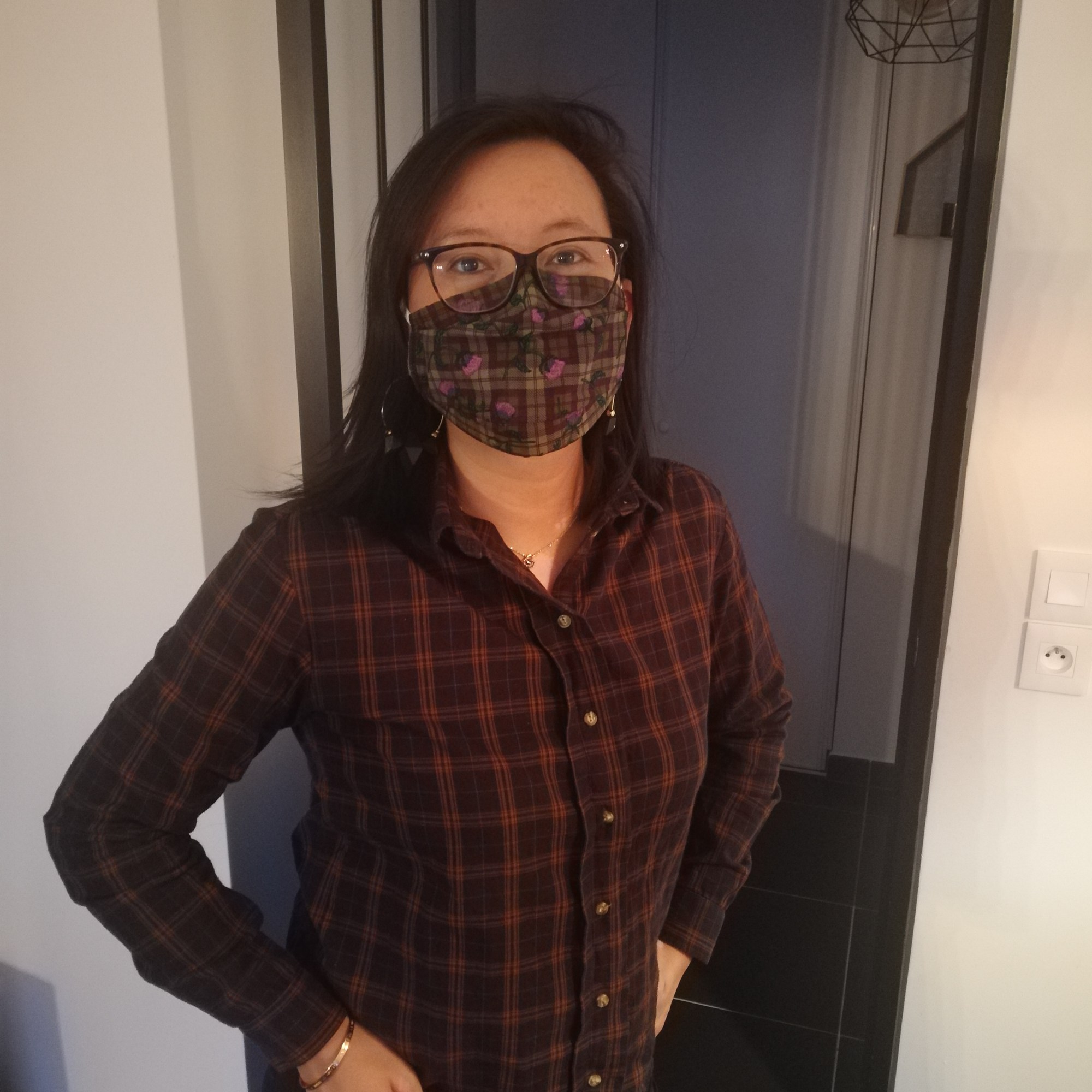 Mathilde fabrique des masques en coton selon les recommandation AFNOR. Ils sont composés d’une couche de coton externe et de 2 couches de polycoton (mélange coton x polyester). A noter qu’ils disposent d’une petite bande métallique pour ajuster au niveau du nez, 2 élastiques pour les oreilles et ils sont lavables à 60°. Ils sont décorés avec des motifs, plutôt féminins, chardon ou tartan de différentes couleurs. On les a testé, le maintien est bon, ils sont respirants et agréables à porter et supportent bien le lavage.