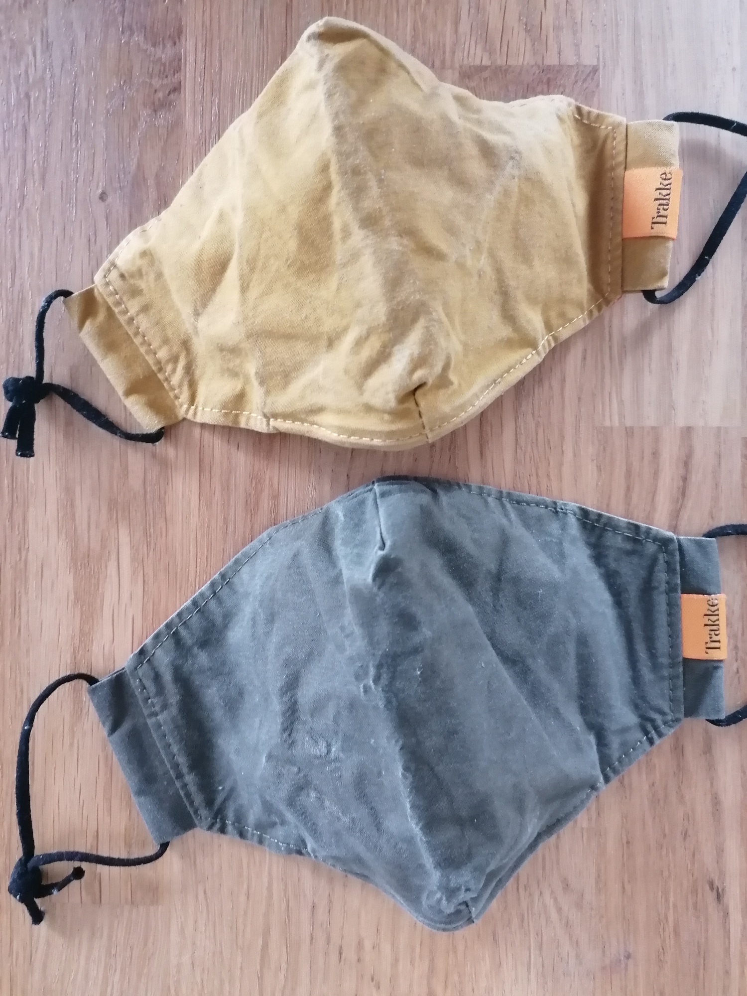 Trakke est une marque de Glasgow qui fabrique essentiellement des bons sacs en coton ciré. J’ai testé leurs masques unisexe qui sont en coton ciré, résistant à l’eau, avec une doublure en coton qui permet l’insertion d’un filtre supplémentaire. Je les ai bien portés et poncés 😜 avec le lavage (60°). Il sont bien ajustés, disposent d’une bande métallique pour ajuster au niveau du nez et sont bien confortables. Une partie des ventes est reversée à des oeuvres de charité locales.