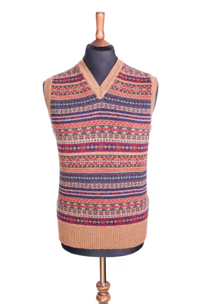 Basé à Edimbourg (Queen Street) avec à sa direction Vixy Rae, auteur des ouvrages « The secret life of tartan » & « The art of Tweed » que je recommande chaudement. Pour le fun, je vous glisse ici une version avec col V/sans manche /couleur rose pour homme, pour les plus audacieux 😀., fabriquée à Hawick en l’occurence.