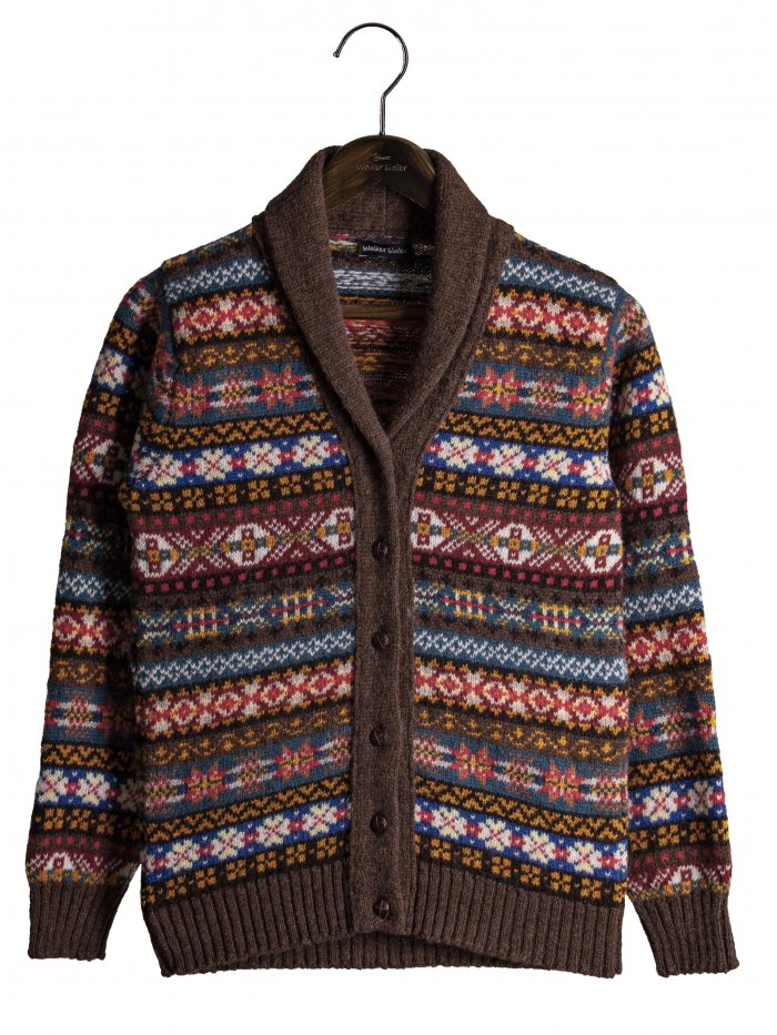 Basé à Edimbourg (Victoria Street), Glasgow (Brunswick Street), Londres (Covent Garden). Les modèles présentés ici sont 100% pure laine vierge et fabriqués sur les îles Shetland (un bon cardigan shawl collar dans le lot).