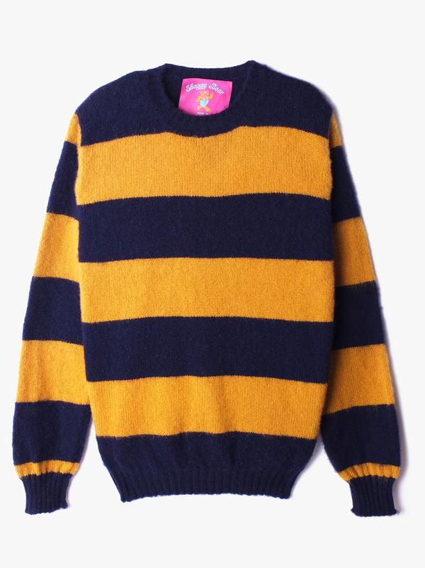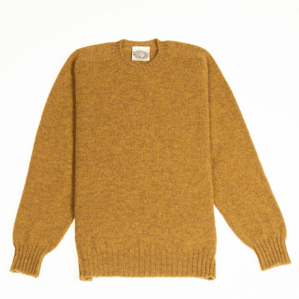 Les pulls shaggy sont des pulls dont la laine est brossée avec des cardères pour leur donner un effet duveteux, très prisé notamment par le style Ivy League. A noter que toutes les laines ne peuvent pas être brossées, d’où la spécificité de la laine Shetland.